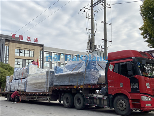 2019年后一周周一,百強的今天顯得格外忙碌,包裝,裝車,工人們忙的意義樂乎,為了后一戰。江西的貨物在今天也陸續發出,折疊、高燙、洗脫等等設備一一上線。裝設備的車一車,兩車,三車應接不暇!那么百強的設備到底強在哪里?