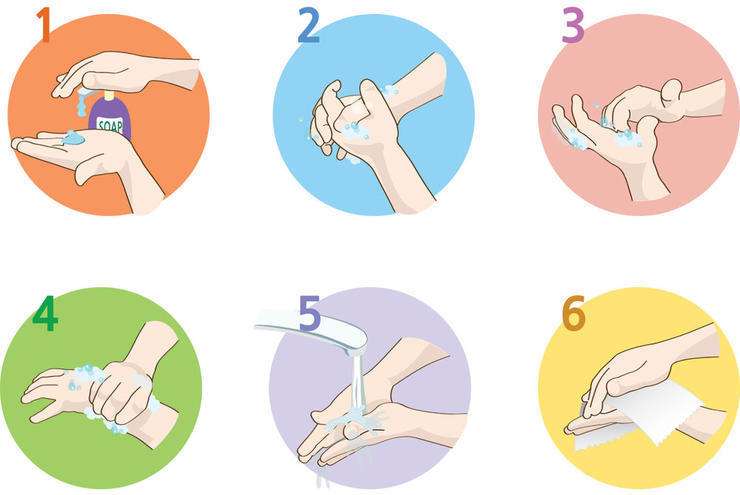 這里小編建議采用6步洗手法洗手即:首先用水沖洗手,用洗手液或香皂打泡沫,然后掌心相對,手指并攏揉搓掌心;接著雙手交換沿指縫相互搓擦;然后掌心相對,雙手交叉沿指縫相互摩擦;一手握著另一手大拇指旋轉(zhuǎn)搓擦,兩手交換進行;接下來彎曲各手指關(guān)節(jié),在另一手掌心旋轉(zhuǎn)搓擦,兩手交換進行,后,搓洗手腕就結(jié)束了。